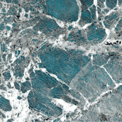 Изумрудно-бирюзовый оттенок текстуры камня амазонит является уникальным, из-за чего его ранее путали со светлой разновидностью нефрита, который добывали в окрестностях реки Амазонки, что и дало название настоящему минералу. В состав амазонита входят кристаллы кварца, поэтому бело-серые прожилки имеют такую необычную структуру с вкраплениями, трещинками и переходами цвета от темного к светлому. Этот камень бирюзового цвета ценится в декоре интерьеров, ведь такой сложный, многогранный цвет считается максимально приближенным к модному и уже ставшему классическим цвету «Tiffany». Amazon River сочетается со всеми бело-серыми мраморами бренда: Dallas Silver, Calacatta Montreal, American Calacatta, Atlantic Marble, Statuario Silver, а также с лаконичным артикулом Domines Super White.